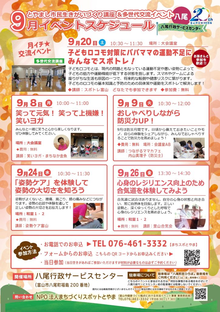 9月26日(金)午後1時半から富山市八尾行政サービスセンターで合気道体験会を開催します!